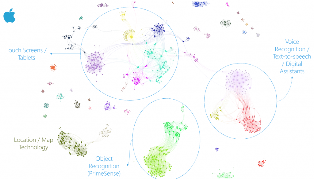 Key areas in which Apple cites scientific activity based on patents published in 2014, 2015 and 2016